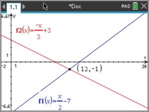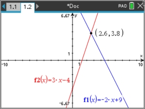 1.  Solve the linear system:  y = -2x + 9   and   y = 3x - 4
