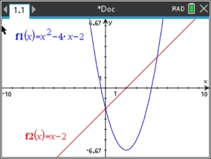 3.  Solve linear quadratic system:  y = x2 - 4x - 2  and   y = x - 2