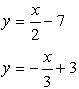 2.  Solve the linear system:  x - 2y = 14   and   x + 3y = 9