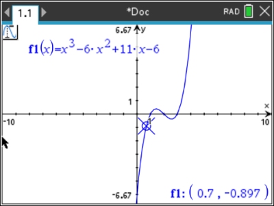 Values such as y-intercept, x-intercept, zero, maximum and minimum of the graph will automatically appear when encountered by the "spider".