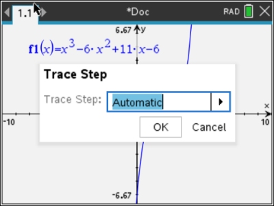 After setting the step to 0.1, the spider now moves in tenths across the graph at the right.
