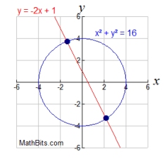 In a linear- quadratic system where BOTH variables in the quadratic are squared, the graphs will be a cirlce and a straight line. When graphing a circle and a straight